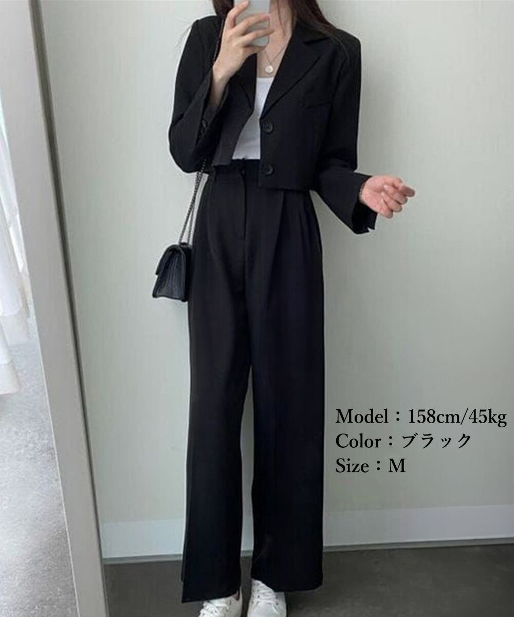 クロップドジャケット スーツワイドパンツ 春秋セットアップ オフィスカジュアル 20代30代40代 おしゃれフォーマル服