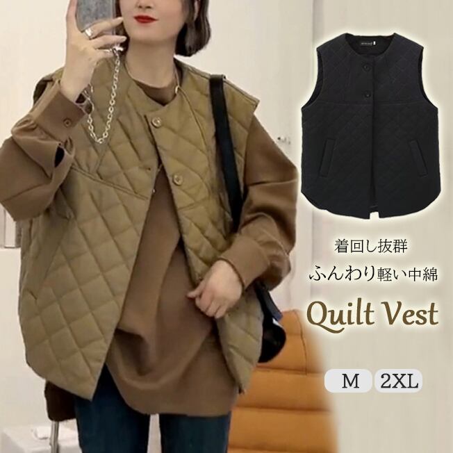 回し抜群のふんわりと軽い中綿 キルトベスト
