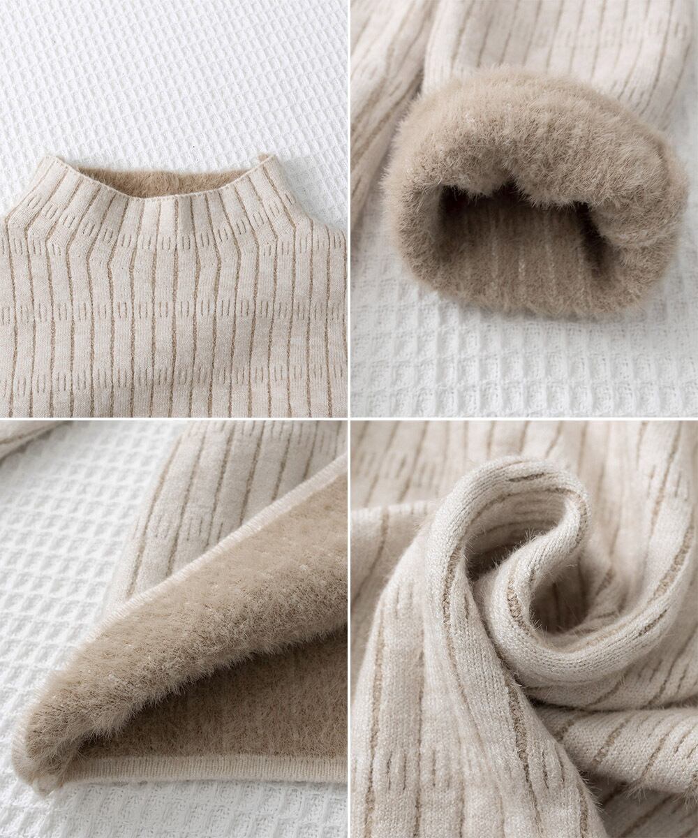裏ファーニット防寒 チクチクしない冬服 タイトニット韓国風