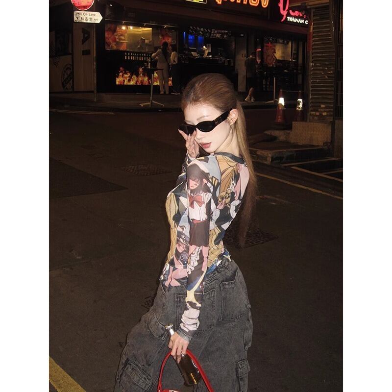 トップス カットソー ロンT Tシャツ 薄手 レース クルーネック ラウンドネック レディース