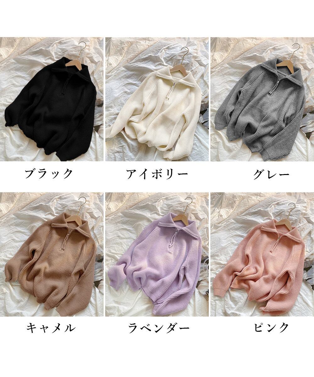 ジップを閉めればハイネックスタイル、開ければ襟付きニットに変身!どちらもおしゃれに着こなせる2WAYデザイン