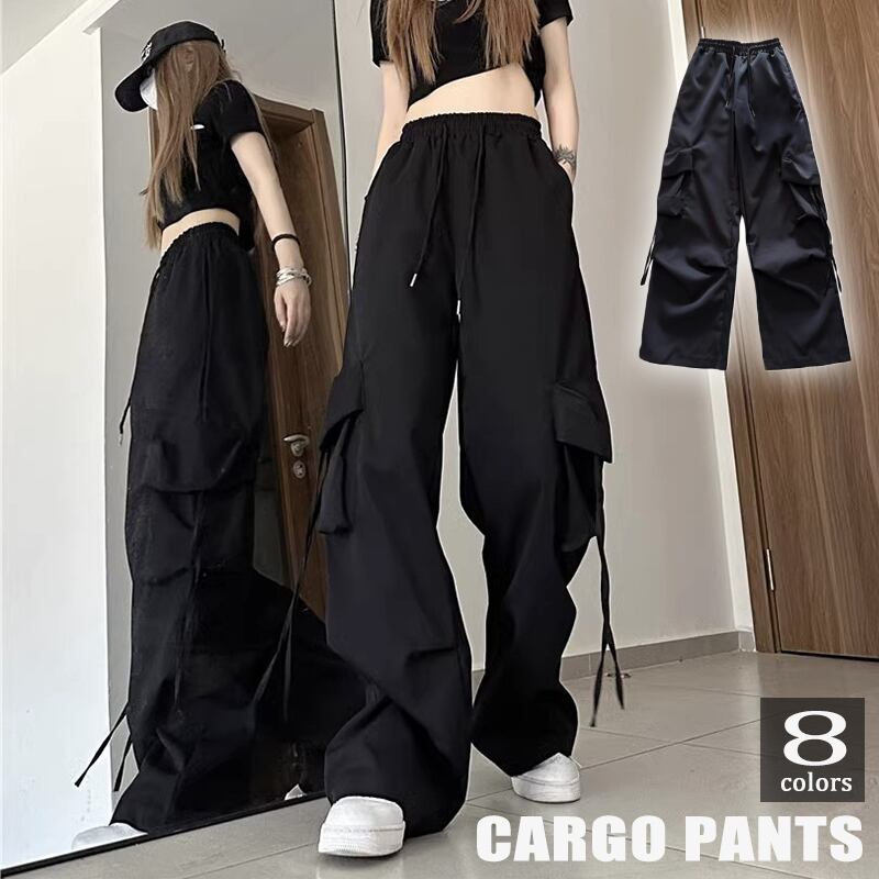 トレンド レディース カーゴパンツ イージー ズボン ワイドパンツ ダンス衣装 体系カバー 黒