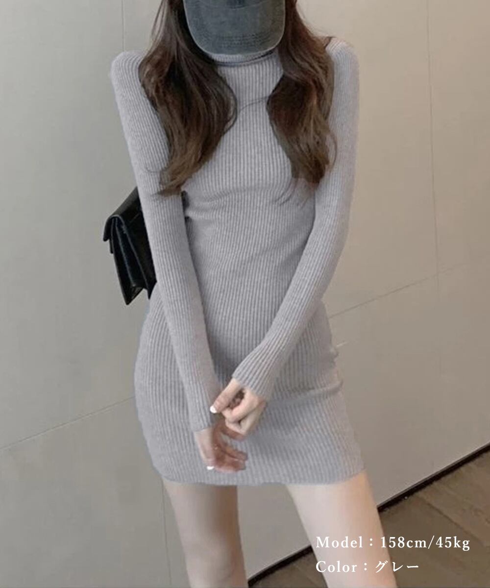 レディース タートルネック ニットドレス おしゃれ 秋冬ボディコンワンピ 無地 スリムフィット 韓国 セクシーワンピ細身